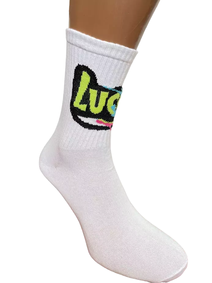 Шкарпетки молодіжні, високі, з резинкою, в спортивному стилі. Яскравий напис додає шкарпеткам індивідуальності. Виготовлені з високоякісної бавовни на власному виробництві. Білого кольору , розмір 25-27(38-40). В упаковці 8 пар