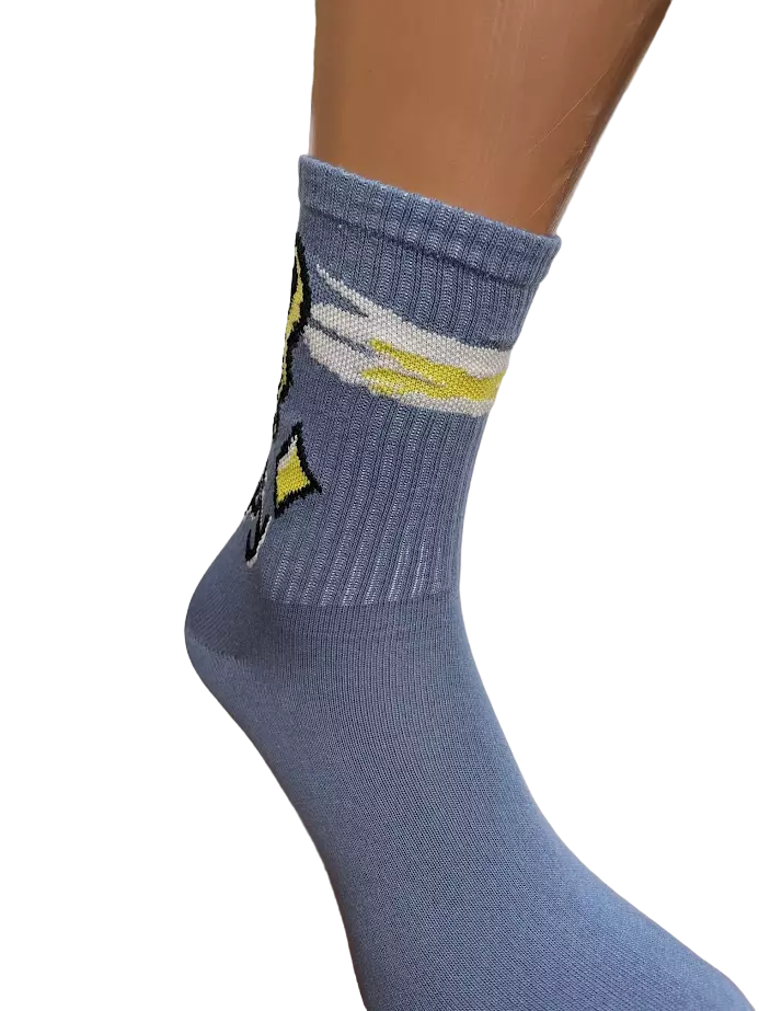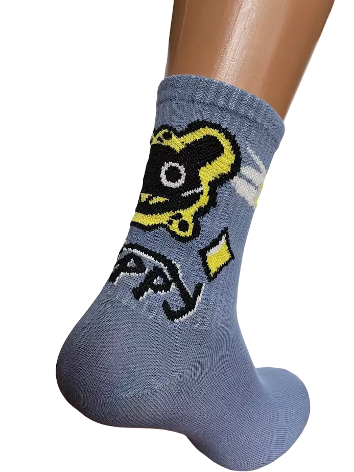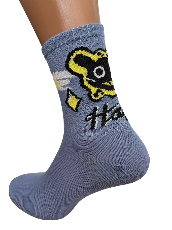 Шкарпетки молодіжні, високі, з резинкою, в спортивному стилі. Яскравий напис додає шкарпеткам індивідуальності. Виготовлені з високоякісної бавовни на власному виробництві. Сіро-блакитного кольору , розмір 25-27(38-40). В упаковці 8 пар