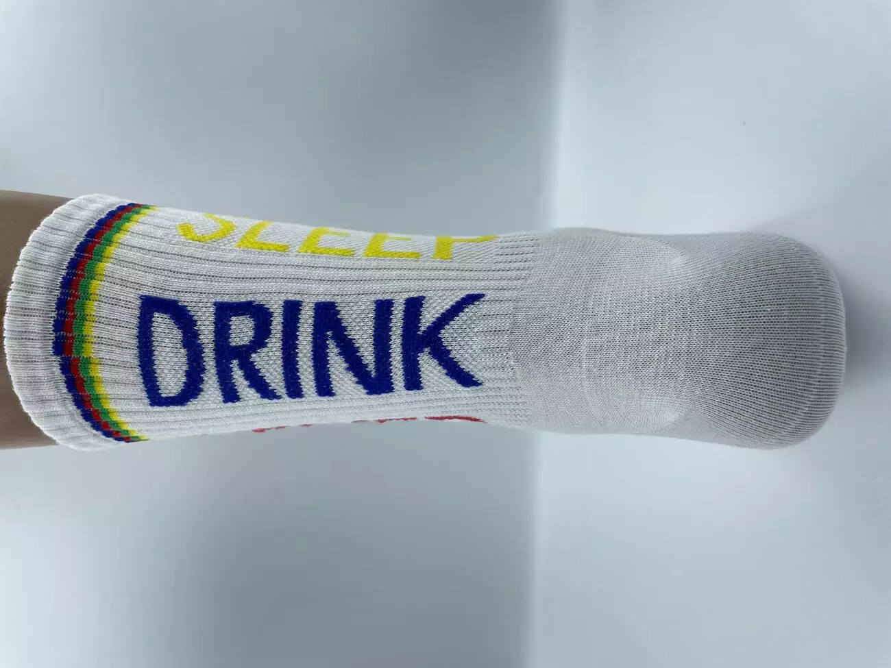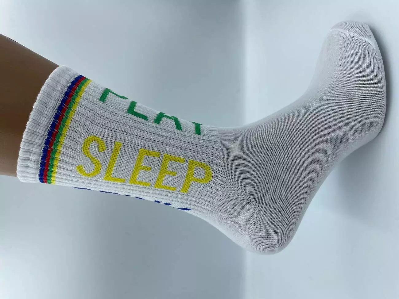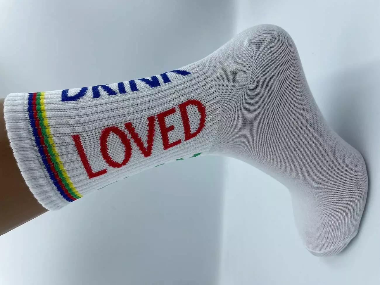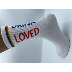 Шкарпетки молодіжні, високі, з резинкою, в спортивному стилі. Яскравий напис додає шкарпеткам індивідуальності. Виготовлені з високоякісної бавовни на власному виробництві. Білого кольору в трьох розмірах.